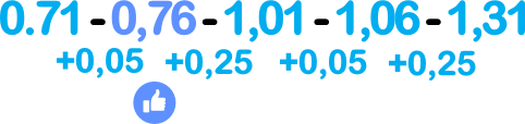 En effet, la série progresse en additionnant en alternance +0,05 et +0,25.