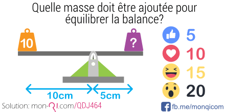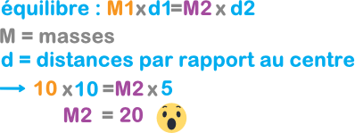 Il faut disposer une masse de 20 pour équilibrer la balance.