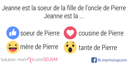 En analysant la phrase: - la soeur de la fille de l'oncle de Pierre = la fille de l'oncle de Pierre = la cousine de Pierre