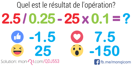 Le résultat de l'opération est 7.5 : priorité à la division et à la multiplication.