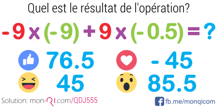 Le résultat de l'opération est 76.5 : priorité à la multiplication.