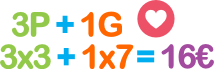 Pour 16€ nous avons 3 pains et 1 gâteau.