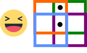 Un autre point est à la fois dans le carré vert, le carré orange, le carré bleu et le carré violet.