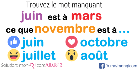 L'analogie est une construction sur une séquence logique : nombre de mois entre juin et mars.