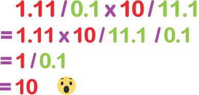 Ainsi, 1.11 x 10 /11.1 devient 1 et on divise par 0.1, ce qui revient à multiplier par 10.