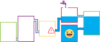 Le réservoir qui se remplit en premier est le violet. Attention l'une des connexions est fermée vers le réservoir jaune.