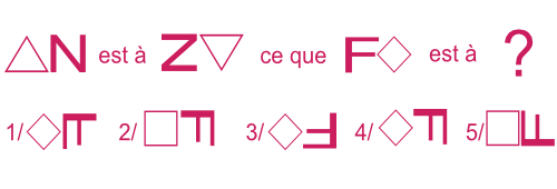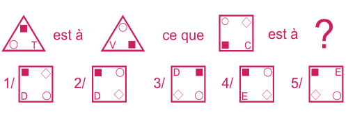 Accueil > Test psychotechnique > Test de logique > Test d'analogie visuelle > Test d'analogie visuelle 2